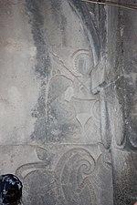 The south window has an interesting decoration: it is topped with radial rays formed of stones of two colors and between the arches of the paired window an image of an eagle can be seen.