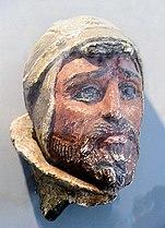 Rowland particularly draws attention to the similarity of the ethnic types represented at Khalchayan and in the art of Gandhara, and also in the style of portraiture itself.[8] For example, Rowland find a great proximity between the famous head of a Yuezhi prince from Khalchayan, and the head of Gandharan Bodhisattvas, giving the example of the Gandharan head of a Bodhisattva in the Philadelphia Museum.[8] The similarity of the Gandhara Bodhisattva with the portrait of the Kushan ruler Heraios is also striking.[8] According to Rowland the Bactrian art of Khalchayan thus survived for several centuries through its influence in the art of Gandhara, thanks to the patronage of the Kushans.[8]