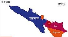 Khasas are thought to be connected to the medieval Khasa Malla kingdom and the modern Khas people of Nepal.[16] The modern Khas people of Nepal have also been connected with the ancient Khasas, although their period of migration in Nepal remains ambiguous.[17] In Nepal the Khas people first settled around present day Humla and Jumla. The Khasa kings of Nepal formed the famous Malla Kingdom, which ruled Humla from the eleventh century before collapsing and splintering into local chiefdoms during the fourteenth century.[18] The Khasas (identified with Khasa Mallas) are also mentioned in several Indian inscriptions dated between 8th and 13th centuries CE.[12] The 954 AD Khajuraho Inscription of Dhaṇga states Khasa kingdom equivalent to Gauda of Bengal and Gurjara-Pratihara dynasty. The Nalanda inscription of Devapala and Bhagalpur; copper plate of Narayanapala also mentions about Khasas. The three copper plates from Pandukeshavara explains the territories of Khasas.[12]