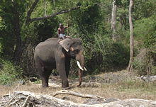 In the Madras State, now Tamil Nadu, and in Kerala, the practice followed to capture a small number of elephants was by the pit method during the monsoon months of July to September. The elephants were captured and tamed to meet the demands of temples and to move timber in the forests.[3][12] Noosing, using the trained elephants backs, is the practice adopted in Bengal and also in Nepal. In this method three or four fast moving tamed elephants, each with three mahouts as guides were used in this method with the rope tied to the tame elephants body with the other end used as a noose.[1]