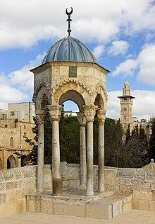 Khidr or al-Khidr (Arabic: ٱلْخَضِر al-Khaḍir), also transcribed as al-Khadir, Khader, Khizr, Khazer, Khadr, Khedher, Khizir, Khizar, is a figure described but not mentioned by name in the Quran as a righteous servant of God possessing great wisdom or mystic knowledge. In various Islamic and non-Islamic traditions, Khidr is described as a messenger, prophet, wali, slave or angel,[1][2] who guards the sea, teaches secret knowledge[3] and aids those in distress.[4] As guardian angel, he prominently figures as patron of the Islamic saint Ibn Arabi.[5] The figure of al-Khidr has been syncretized over time with various other figures including but not limited to Dūraoša [6] and Sorūsh in Iran,[7][8][9] Saint Sarkis the Warrior,[10][11] and Saint George in Asia Minor and the Levant, Samael (the divine prosecutor) in Judaism, John the Baptist in Armenia, and Jhulelal[12] in Sindh and Punjab in South Asia.[13][14][15][16][17]