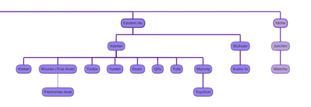 The earliest written reference to the Khitan is from an official history of the Xianbei Northern Wei Dynasty dating to the period of the Six Dynasties. Most scholars believe the Khitan tribe splintered from the Xianbei, and some scholars believe they may have been a mixed group who also included former members of the Xiongnu tribal confederation.[6][7] The Khitan shaved their heads, leaving hair on their temples which grew down to the chest, in a similar fashion to the related Kumo Xi, Shiwei and Xianbei whom they are believed to be descended from.[8]