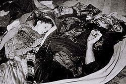 Armenian media has reported that the Azerbaijani media has presented pictures of victims of other events, such as the Kosovo War from 1998/1999, Afghanistan, earthquake victims in Turkey, and refugees from other regions as "Azerbaijani victims of the Khojaly massacre".[62][63][64][65] In 2019, in a photo exhibition in Tehran organised by the Azerbaijani embassy, a photograph held in the collection of the Library of Congress showing victims of the Armenian Genocide was displayed as being an image of the Khojaly massacre.[66] Azerbaijani media has reported that Armenian media has presented images of victims of the Khojaly massacre as Armenian victims of the Baku Pogrom, the Sumgait pogrom, and the Armenian Genocide.[67][68][69]