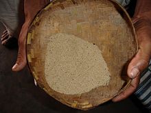 The Kondhs have a dormitory for adolescent girls and boys which forms a part of their enculturation and education process. The girls and boys sleep at night in their respective dormitory and learn social taboos, myths, legends, stories, riddles, proverbs amidst singing and dancing the whole night, thus learning the way of the tribe. The girls are usually instructed in good housekeeping and in ways to bring up good children while the boys learn the art of hunting and the legends of their brave and martial ancestors. Bravery and skill in hunting determine the respect that a man gets in the Khond tribe. A large number of Khonds were recruited by the British during the First and Second World Wars and were prized as natural jungle warfare experts. Even today a large proportion of the Khond men join the state police or armed forces of India to seek an opportunity to prove their bravery. The men usually forage or hunt in the forests. They also practise the podu system of shifting cultivation on the hill slopes where they grow different varieties of rice, lentils and vegetables. Women usually do all the household work from fetching water from the distant streams, cooking, serving food to each member of the household to assisting the men in cultivation, harvesting and sale of produce in the market.[4]
