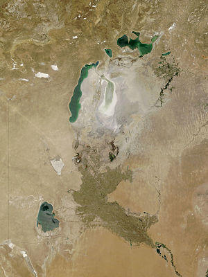 C.E. Bosworth, however, believed the Persian name to be made up of xor (خور "the sun") and zam (زم "earth, land"), designating "the land from which the sun rises",[6] although a similar etymology is also given for Khurasan. Another view is that the Iranian compound stands for "lowland" from kh(w)ar "low" and zam "land.".[4] Khwarazm is indeed the lowest region in Central Asia (except for the Caspian Sea to the far west), located on the delta of the Amu Darya on the southern shores of the Aral Sea. Various forms of khwar/khar/khor/hor are commonly used also in the Persian Gulf to stand for tidal flats, marshland, or tidal bays (e.g., Khor Musa, Khor Abdallah, Hor al-Azim, Hor al-Himar, etc.)