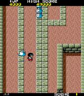 KiKi KaiKai was originally created in 1986 by Taito game designer Hisaya Yabusaki. Pulling inspiration from tales of Japanese mythology, as well as several top-down arcade shooters popular during the era, the game put a conventional spin on the usually technologically driven science-fiction "Shoot 'em up" titles at the time. Utilizing action game elements, the player is free to move about the screen as they choose, instead of being forced forward in normal scrolling shooter fashion. While similar to the earlier released game Commando in both style and presentation,[2] Kiki KaiKai is described by Taito as a "lovely action game" offering an "exotic Asian atmosphere".[6]