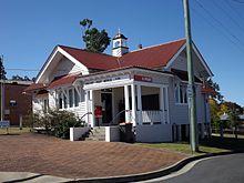 Kilcoy's first Provisional School was opened in 1884 at Sheep Station Creek, some five to six miles north of Kilcoy Homestead, the name changing to Sheep Station Creek Provisional School in 1892 when the Kilcoy School opened its doors in Hope Street in Kilcoy.[22][23] At that time there were still no subdivisions north of William Street as that was part of Kilcoy Station which was sold up in 1907.[24] The first Post Office was built in rented premises in Royston Street in 1892, the official Post Office in Kennedy Street still being some 21 years into the future.[21] Hopetoun Post Office opened on 1 December 1892 (a receiving office had been open from 1889) and was renamed Kilcoy in 1907.[16]