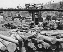 Timber milling operations were established as early as 1877, with Frank Nicholson building at Villeneuve, followed by James Green (1888), Hancock Brothers (1897), George Seeney and William and Stan Kropp in the same vicinity.[14] The turn of the century saw a huge increase in activity as Hancock & Gore timber mill began operation.[24]