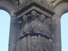 According to local tradition, the chancel was roofed with an oak ceiling (blue with gold start) until the end of the 18th century. It is roofless today and features a 15th-century doorway, a 15th-century Gothic sedilia as well as a Romanesque three-light east window with its triangular pillars topped by carved capitals. On both sides of the window is a carved effigy: a bishop with his right hand raised in blessing (possibly early 14th century), to the north; and a tonsured, bareheaded cleric holding a book (possibly 13th century) to the south. The chancel also contains several tombs and the remains of high crosses.[7]