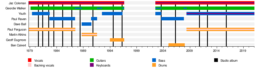 - Youth – bass (1979–1982, 1992–1996, 2002–2003, 2008–present), keyboards (2008–present)