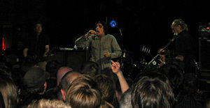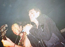 ![]() Killing Joke performing at the 2009 Ilosaarirock Festival. From left to right: Ferguson (background), Walker, Coleman, Youth | |