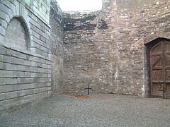 Originally, public hangings took place at the front of the prison.[1] However, from the 1820s onward very few hangings, public or private, took place at Kilmainham.[1] A small hanging cell was built in the prison in 1891. It is located on the first floor, between the west wing and the east wing.
