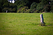 On the northwestern slopes, in a field near the village of Rockbrook, are two standing stones, square in section and approximately 1.8 metres (5.9 feet) tall.[20] Another standing stone, 1.4 metres (4.6 feet) tall, lies nearby.[21]