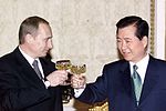 His policy of engagement with North Korea has been termed the Sunshine Policy.[3] He moved to begin détente with the communist government in North Korea, which culminated in a historic summit meeting in 2000 in Pyongyang with North Korean leader Kim Jong-il. This marked a critical juncture in inter-Korean relations. On 13 October 2000, he was awarded the Nobel Peace Prize for these efforts.[29] A big consequence of these efforts is that on September 15, 2000, the Korean Unification Flag(Korean: 통일기; Hanja: 統一旗; RR: Tong-ilgi; MR: T'ong'ilgi) was carried into an Olympic Stadium during an Olympic opening ceremony for the first time. However, the historic event was tainted significantly by allegations that at least several hundred million dollars had been paid to North Korea. This is the Cash-for-summit scandal. Hyundai transferred $500 million to the North just months before the summit, triggering criticism that S.Korean Government paid for the summit. Hyundai claimed the money was a payment for exclusive business rights in electric power facilities, communication lines, an industrial park, cross-border roads and railway lines in North Korea. And in this regard, Park Jie-won was charged with violating domestic laws on foreign exchange trade and inter-Korean cooperation affairs while orchestrating covert money transfers by Hyundai to North Korea. Mr. Park played a pivotal role in arranging the first Inter-Korean summit. In May 2006, he was sentenced for three years in prison. Park was released in February 2007, and pardoned in December 2007.[30] Also in order to persuade North Korea to attend the summit, several "unconverted long-term prisoners" kept by South Korea were released and returned to North Korea.[31]