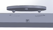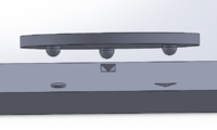 The Kelvin coupling is named after William Thompson (Lord Kelvin) who published the design in 1868–71.[2] It consists of three spherical surfaces that rest on a concave tetrahedron, a V-groove pointing towards the tetrahedron and a flat plate. The tetrahedron provides three contact points, while the V-groove provides two and the flat provides one for a total required six contact points. The benefits of this design is that the center of rotation is located at the tetrahedron, however it suffers from contact stress problems in high load applications.[1]