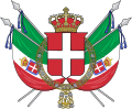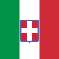 Civil and merchant flag (1851–1861), the Italian tricolore with the coat of arms of Savoy as an inescutcheon