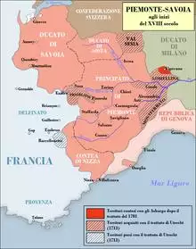 - ^ Christopher Storrs, "Savoyard Diplomacy in the Eighteenth Century (1684–1798)", in Daniela Frigo (ed.), Politics and Diplomacy in Early Modern Italy: The Structure of Diplomatic Practice, 1450–1800 (Cambridge University Press, 2000), p. 210.