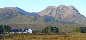 The Kings House Hotel is an inn located at the eastern end of Glen Coe at the junction with Glen Etive in the Scottish Highlands. The inn, which is sited in an isolated position, about 2 km to the east of the head of the glen towards Rannoch Moor, and faces towards Buachaille Etive Mor, is a popular hostelry with rock climbers. It is called the King's House because it was used by the British Army during the subjugation of the Highlands following the aftermath of the Jacobite Rising of 1745.