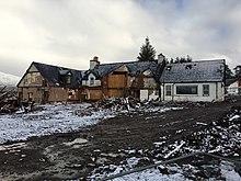 The property was put up for sale in 2014, and was bought by the adjacent Black Corries Estate. A project team including hotelier Crieff Hydro prepared proposals,[2] and in 2015 they announced a major refurbishment project, including removal of a 1960s extension and opening a hostel.[3] A further planning application was made in 2017, and on 1 November the hotel closed for refurbishment. Demolition of the old extension commenced that month, and in January 2018 the new plans were given planning approval despite objections from the John Muir Trust.[4][5] The new King's House Hotel, refurbished with 57 bedrooms, reopened in February 2019.