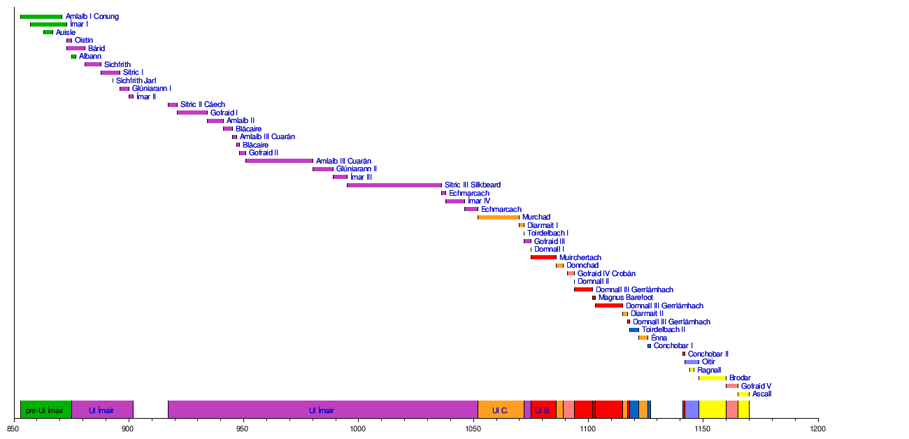 | Ímar | c. 857–873 | Co-king; titled "King of the Foreigners" in 863; titled "King of the Northmen of all Ireland and Britain" in 873 |