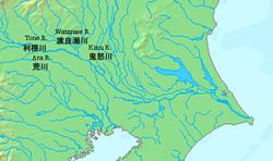 35°56′16″N 139°57′02″E / 35.937815°N 139.9505°E (confluence with Tone River)