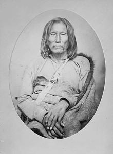 Dohasan, who is also known as Touhason,[36] is considered by many to be the greatest Kiowa Chief (1805–1866), as he unified and ruled the Kiowa for 30 years. He signed several treaties with the United States, including the Fort Atkinson Treaty of July 27, 1852, and the Little Arkansas Treaty of 1865.[36] Guipago became the head chief of the Kiowa when Dohosan (Little Bluff) named him as his successor. Guipago and Satanta, along with old Satank, led the warring faction of the Kiowa nation, while Tene-angopte and Napawat led the peaceful party.[35]