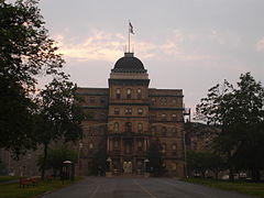 The highest concentrations of Kirkbride Plan hospitals were in the Northeast and Midwestern states.[30] Fewer Kirkbride Plan hospitals were constructed on the West Coast: In California, the Napa State Hospital was a notable Kirkbride Plan hospital, though the original structure was severely damaged during the 1906 San Francisco earthquake, and was ultimately demolished.[31] The two surviving Kirkbride structures on the West Coast are both located in the state of Oregon, at the Oregon State Hospital, and the Eastern Oregon State Hospital, the latter of which now houses the Eastern Oregon Correctional Institution.[32] While the vast majority of Kirkbride hospitals were located in the United States, similar facilities were built in Canada, and the Callan Park Hospital for the Insane in Sydney, Australia (constructed in 1885) was also influenced by Kirkbride's design.[33]