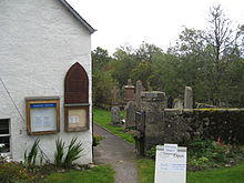 The disused Free Kirk, known as the Duff Memorial Church, was built in the late 19th century by the breakaway Free Church of Scotland. In 1928 the Free Kirk amalgamated back into the Church of Scotland, with the two churches being used on alternate Sundays until the Duff Memorial finally closed in the 1950s. It was then used as an agricultural building and in the late 1990s the Village Hall committee drew up plans to acquire the building, restore it to its former glory and provide the village with a 21st-century Community Hall. However, it was sold to a property developer who then found his plan for conversion to a house was impossible, so the old kirk still sits empty and disused and is rapidly deteriorating. The Free Kirk manse became a SYHA youth hostel and for 30 years was very popular with cyclists and hikers. It is now a private house. Opposite the Old Manse is a cottage which was originally the parish poorhouse.