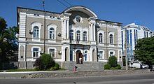 Over its history, Kropyvnytskyi has changed its name several times. The settlement was known as Yelisavetgrad (Ukrainian: Єлисаветгра́д [jɛlʲisavʲɛtɣrad]) after Empress Elizabeth of Russia (r. 1741–1761) from 1752 to 1924 as well as simply Elysavet.[3] In 1924 it became Zinovyevsk (Ukrainian: Зінов'є́вськ, [zʲinɔvɛ́vsʲk]) in honour of the Bolshevik revolutionary and Politburo member Grigory Zinoviev (1883-1936), who was born there. Following the assassination of the First Secretary of the Leningrad City Committee of the All-Union Communist Party (Bolsheviks) Sergei Kirov (in office 1926–1934), the town was renamed Kirovo (Ukrainian: Кі́рово [kʲírɔvɔ]) in Kirov's honour on 7 December 1934 - a name-change similar to those of numerous other localities throughout the USSR (including present-day Kirov in Kirov Oblast, Kirovakan, Kirovabad, as well as multiple instances of Kirovsk, Kirovo, Kirovsky and other derivatives). Concurrently with the formation of the Kirovohrad Oblast on 10 January 1939, and to distinguish it from the Kirov Oblast in central Russia, Kirovo was renamed Kirovohrad (Ukrainian: Кіровогра́д [kirowoˈɦrɑd]; Russian: Кировогра́д, romanized: Kirovograd), a name it maintained until 2016.[4] Due to mandated decommunization the name of the city then changed to Kropyvnytskyi, in honour of the writer, actor and playwright Marko Kropyvnytskyi (1840-1910), who was born near the city.[4] However the Kirovohrad Oblast was not renamed because it is mentioned in the Constitution of Ukraine - only a constitutional amendment could change the name of the oblast.[5]