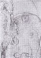 Medicine was the second painting, presented in March 1901 at the tenth Secession Exhibition. It featured a column of semi-nude figures on the right hand side of the painting, representing the river of life. Beside it was a young nude female who floated in space, with a newborn infant at her feet, representing life. A skeleton represented death in the river of life. The only link between the floating woman and the river of bodies is two arms, the woman's and a man's as seen from behind. At the bottom of the painting Hygieia stood with the Aesculapian snake around her arm and the cup of Lethe in her hand, turning her back to mankind. Klimt conveyed an ambiguous unity of life and death, with nothing to celebrate the role of medicine or the science of healing.[5] Upon display of the painting in 1901, he was attacked by critics. An editorial in the Medizinische Wochenschrift complained that the painter had ignored doctors' two main achievements, prevention and cure. For a rough composition draft of the painting see here.[6]