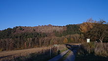 Most of the slope is covered by vegetation which is not native to the location – black pine (Pinus nigra), European larch (Larix decidua), black locust (Robinia pseudoaccacia) and Norway spruce (Picea abies). The original community of oak-hornbeam forests (Sessile oak (Quercus petraea), common hornbeam (Carpinus betulus), field maple (Acer campestre)) can only be found in the upper parts of the profile. The formerly woodless areas tend to be covered by bushes of dog-rose (Rosa canina), blackthorn (Prunus spinosa) and common dogwood (Cornus sanguinea), atop the hill we may find an area of xerothermic grasslands such as spotted knapweed (Centaurea stoebe) and hairy oxytropis (Oxytropis pilosa).[4]