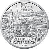 Klosterneuburg was recently selected as a main motif for a high value collectors' coin: the Klosterneuburg commemorative coin. The obverse shows a view of the abbey from the slopes of the Leopoldsberg in the Alps. The Romanesque-Gothic basilica as well as the copper dome with the imperial crown can be seen.
