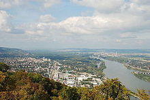 It is located on the Danube, immediately north of the Austrian capital Vienna, from which it is separated by the Kahlenberg and Leopoldsberg hills of the Vienna Woods range. It has been separated from its twin city of Korneuburg on the left bank of the Danube since the river changed its course during the Late Middle Ages. Both towns are connected by a reaction ferry link. The municipal area comprises the northern tip of the Donauinsel as well as the 515 m (1,690 ft) high Mt. Exelberg and its telecommunication tower.