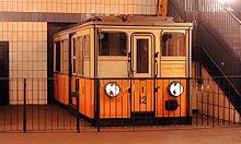 The station was added in 1975 to the Berlin District Monument List. Between 1984 and 1986, the Karl-Marx-Stadt housing construction complex carried out a complex renovation in preparation for the 750th anniversary of Berlin in 1987. This substantial damage, which was still from war days, eliminated and transformed the station into an "experiential" museum. The billboards, which were not needed in GDR times, provided space for a total of 22 enamel panels from the Schilderwerk Beutha, which depict the development of Berlin's public transport system on the basis of the respective vehicles. In addition, the front part of the railcar 12 of the Schoeneberg Underground from 1910 was restored to its original state and placed in November 1985 at the northern end of the platform between the two stairs. The car was previously used for transfer trips (car number 710 008 formerly 359) between the two East Berlin subway lines, was retired in 1982 after an accident and should symbolize in its current position the entrance of a small profile train coming from the Frankfurter Allee. The future is uncertain, because by 2020 a lift is to be installed at this point.[1]