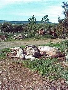 A knacker (/ˈnækər/), knackerman or knacker man, is a job title used for the centuries-old trade of persons responsible in a certain district for the removal and clearing of animal carcasses (dead, dying, injured) from private farms or public highways and rendering the collected carcasses into by-products such as fats, tallow (yellow grease), glue, gelatin, bone meal, bone char, sal ammoniac,[1] soap, bleach and animal feed. A knacker's yard or a knackery is different from a slaughterhouse or abattoir, where animals are slaughtered for human consumption. Since the Middle Ages, the age-old occupation of "knacker man" was frequently considered a disreputable occupation, and subsidiary to their occupation were often also commissioned by the courts as public executioners.[2] In most countries, knackery premises are government licensed and regulated by law.