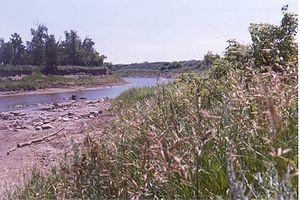 The river consistently floods after spring melting (frequently as high as 10,000 cfs) but is two to three magnitudes lower during the summer months. The confluence of the river (near Stanton, ND) was largely blocked by sand after the Missouri River flood of 2011 but had cut a new channel by the summer of 2012. At Hazen, the river's discharge averages 171 cubic feet per second.[3]