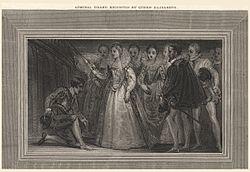 In the early Renaissance greater emphasis is laid upon courtliness. The ideal courtier—the chivalrous knight—of Baldassarre Castiglione's The Book of the Courtier became a model of the ideal virtues of nobility.[44] Castiglione's tale took the form of a discussion among the nobility of the court of the Duke of Urbino, in which the characters determine that the ideal knight should be renowned not only for his bravery and prowess in battle, but also as a skilled dancer, athlete, singer and orator, and he should also be well-read in the Humanities and classical Greek and Latin literature.[45]