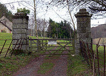 The area and house is said to be haunted by various ghosts and is a popular stop for ghost tourists. One story often told is that of Sir Tristram Dillington, M.P. for Newport, who is thought to have committed suicide after taking to gambling heavily after the death of his wife. His valet is said to have concealed the nature of his death by placing his corpse upon his horse, Thunderbolt, and driving it into the lake, ensuring that the property was not forfeited.[2] The story is that the ghost of Sir Tristram rides a ghostly horse each year on the anniversary of his death, which occurred on 7 July 1721.[3] The most famous haunting is said to take place on New Year's Eve when, it is claimed, the old house 're-appears', many people often gather at the spot on 31 December to try and witness the phenomenon. It is also said that supernatural creatures or 'gargoyles' appear atop the stone pillars. Although the gates are on a main road, the land itself is privately owned.