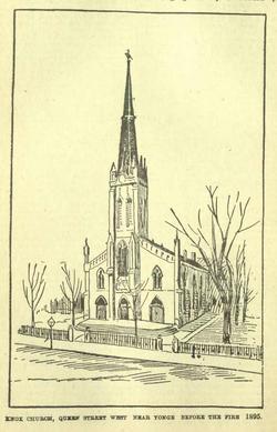 Over time, Knox's location had become more commercial with fewer residents in the area. At the time Toronto had strict Lord's Day laws that prevented public transit from running on Sundays, making it imperative that churches be located near to the population.