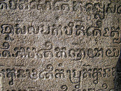 Several inscriptions were found which mention Koh Ker as capital of the empire in Siem Reap, Battambang, Takeo and Kampong Cham (city).[6] From inscriptions discovered at Koh Ker, it is estimated that more than ten thousand people lived at Koh Ker when it was the capital (928 – 944 AD). The inscriptions explain how manpower was organised: taxes in form of rice were raised in the whole country and served to provide for the workers who came from different provinces. An inscription at Prasat Damrei says that the shrine on the top of the state temple (Prang) houses a lingam of about 4.5 m (14 ft 9 in) and that the erection of this Shiva-symbol gave a lot of problems". A Sanskrit inscription at Prasat Thom gives evidence of the consecration of a Shiva-lingam 921 AD which was worshipped under the name of Tribhuvaneshvara ("Lord of the Threefold World").[1](p22)