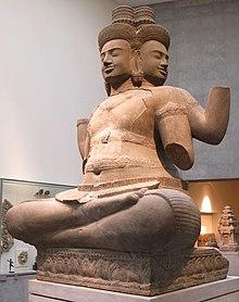 Behind the ruins of the entrance-pavilion and the laterite towers is a red brick tower, called Prasat Krahom (krahom = red), which gives entrance to the enclosed monuments. It has a cruciform plan, is in a good condition and once housed a statue of the Dancing Shiva with five heads and ten arms. The sculpture had a height of 3.50 metres (11 ft 6 in), but is now broken completely. A fragment of a hand of 0.5 metres (20 in) can be seen in the National Museum in Phnom Penh.[1](pp27–28)
