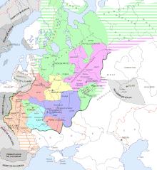 Pomors were soon followed by tribute collectors from the Novgorod Republic, and the Kola Peninsula gradually became a part of the Novgorodian lands.[25] A 1265 treaty of Yaroslav Yaroslavich with Novgorod mentions Tre Volost (волость Тре), which is later also mentioned in other documents dated as late as 1471.[25] In addition to Tre, Novgorodian documents of the 13th–15th centuries also mention Kolo Volost, which bordered Tre approximately along the line between Kildin Island and Turiy Headland of the Turiy Peninsula.[25] Kolo Volost lay to the west of that line, while Tre was situated to the east of it.[25]