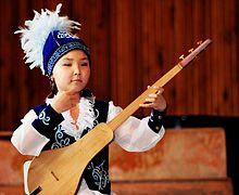 The komuz or qomuz (Kyrgyz: комуз Kyrgyz pronunciation: [qoˈmuz], Azerbaijani: Qopuz, Turkish: Kopuz) is an ancient fretless string instrument used in Central Asian music, related to certain other Turkic string instruments and the lute.[1]