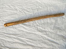 Koncovka is a Slovak duct-blown[2] overtone fipple flute without finger holes,[3] traditionally played by shepherds.[4] The koncovka flute is played by closing and opening the bottom hole of the flute.[3] By increasing the air speed, two different harmonic series of notes can be played with the end either open or closed.[5] Traditional koncovka melodies use the partial Lydian scale available on this instrument.[5]