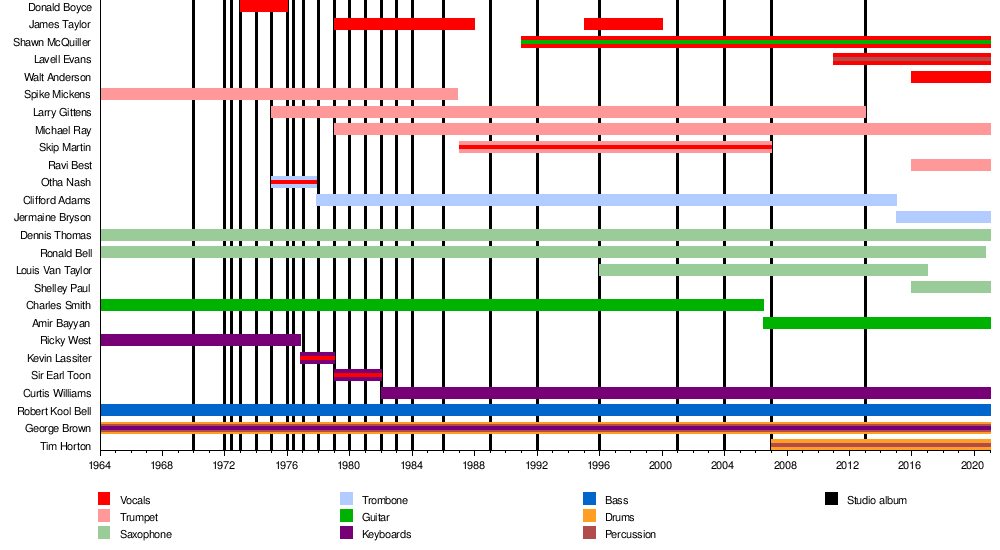- Ronald Bell a.k.a. Khalis Bayyan – tenor saxophone (1964–2020; died 2020)