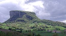 Volcanic or other processes may give rise to a body of rock resistant to erosion, inside a body of softer rock such as limestone, which is more susceptible to erosion. When the less resistant rock is eroded away to form a plain, the more resistant rock is left behind as an isolated mountain. The strength of the uneroded rock is often attributed to the tightness of its jointing.[22][B]