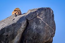 The inselbergs of Eastern Africa tend to be a refuge for life in the Serengeti of Tanzania and Kenya. Where the soil is too thin or hard to support tree life in large areas, soil trapped by inselbergs can be dense with trees while the surrounding land contains only short grass. Hollows in the rock surfaces provide catchments for rainwater.[26] Many animals have adapted to the use of inselbergs, including the lion, the hyrax, and an abundance of bird and reptile life.
