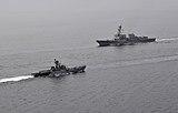 INS Kulish, left, passes USS Halsey during Malabar 2012.