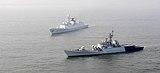 INS Kora escorting PLA Navy Ship Weifang off Visakhapatnam, India.
