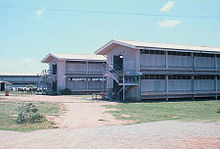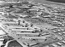 South of the existing runway, construction of a large air base was begun to support a full USAF combat wing. In July 1964, approximately 500 airmen and officers were deployed to begin construction, and the completion of essential base facilities was completed by October 1964, although due to its primitive nature, the air force living area was known for several years as "Camp Nasty" in counterpoint to the Army facility at Camp Friendship.[3] The army retained a portion of the aircraft parking ramp for logistical support of Camp Friendship. The APO for Korat RTAFB was APO San Francisco, 96288